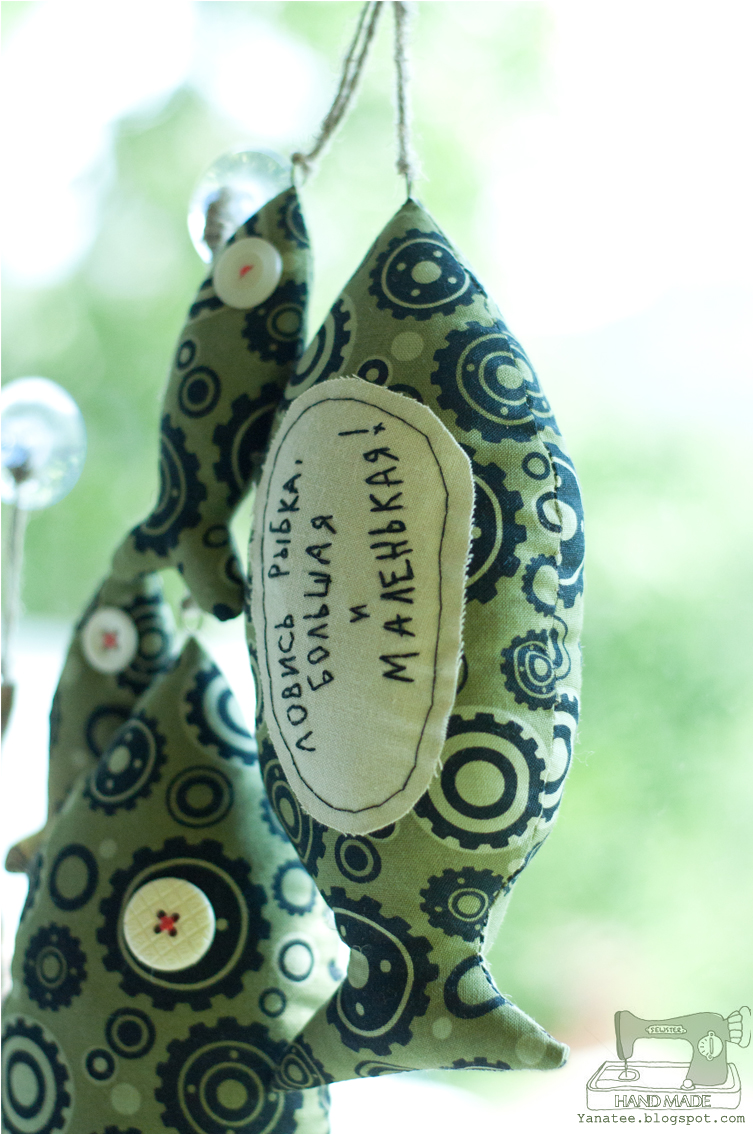 Deleteприкольные рыбы, интересный выбор ткани в шестеренки!) а еще есть пожелание рыбакам - "ни хвоста, ни чешуи")
